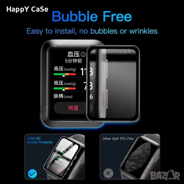 Последните три снимки са реални на протектор за Huawei Watch D.