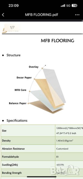 Ламиниран паркет от ново поколение MFB flooring с ядро от минерални влакна (Mineral Fiber Board), със здраво меламиново покритие срещу износване и вградена подложка.