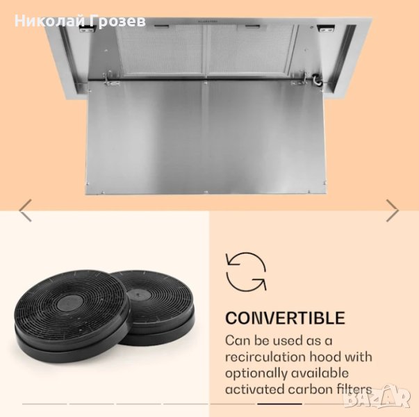 Абсорбаторът Klarstein Remy Brilliant Edition съчетава модерната технология със стилна елегантност: с четирите си нива на производителност, той извлича кухненския дим и успява да отстрани до 618 m³ отработен въздух на час. В същото време работи изключително екологично и тихо. Remy Brilliant Edition е лесен за работа благодарение на предоставеното дистанционно управление. Абсорбаторът не само дава ясна представа, но и благодарение на превключващото осветление с ефективния LED панел осветява вашите тенджери и тигани над печката. Може да регулирате интензитета на светлината между 3000 и 6500 Келвина на три нива, за да изберете желаното от вас осветление. В допълнение, имате възможност да използвате и регулируем таймер или автоматичната функция, която включва островния абсорбатор за 5 минути на всеки час, като гарантира, че и последните остатъци от пара ще се отстранят, когато вече седите около масата със семейството и приятелите си. Абсорбаторът Remy Brilliant Edition предлага възможност за използване като абсорбатор за пара или в режим на рециркулация. В режим на рециркулация той работи с два отделно налични филтъра с активен въглен отпред.