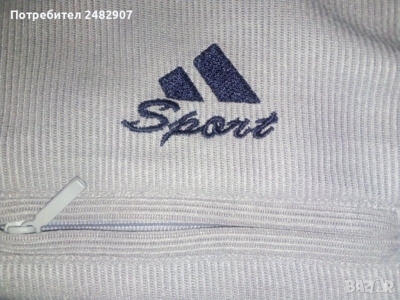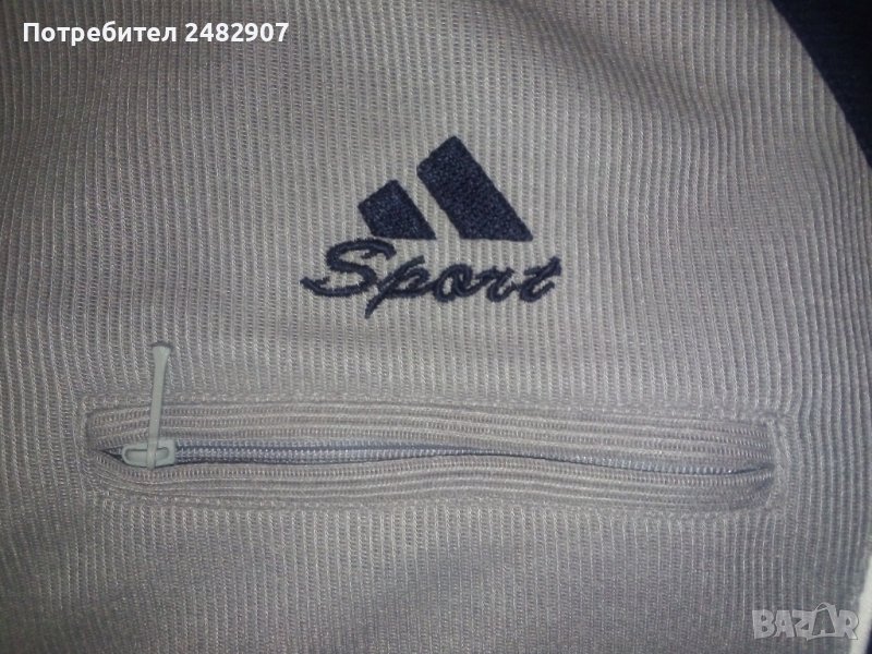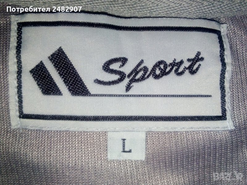 Мъжки потник в сиво и черно с бели кантове, размер L. Съдържа 65 % полиестер и 35 % статън. Ширина в раменете - 47,5 см, ширина под мишниците и долната част - 55 см, дължина от рамото до долу - 75 см. Много запазен, почти не е използван, отлично състояние, без забележки, с един джоб с цип в лявата страна отпред.