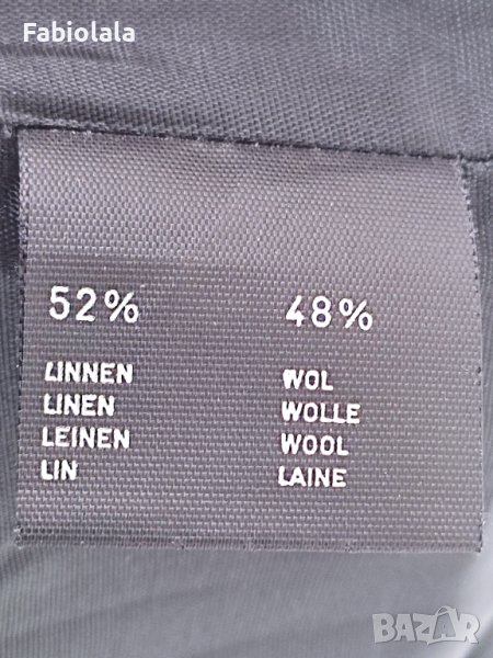 Сако и пола 52% лен 48% вълна EU 42 Боди с памучна подплата, пола и ръкави с ацетат Яке: горна ширина 100 Дължина 58 Рамо 42 Ръкави 64 Пола с цип: дължина 70 Ханш 110 Размер 85 Като ново H75