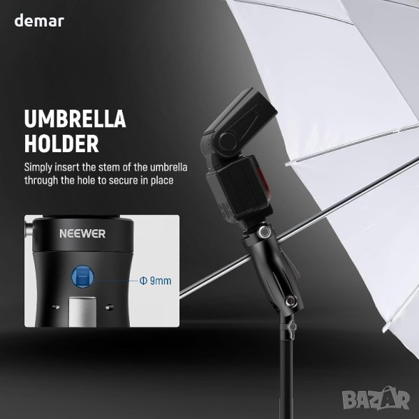 стойка за светкавица извън камерата, чадъри или по-тежки софтбоксове (до 22lb/10kg)