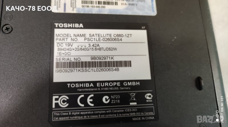 Лаптоп Toshiba Satellite C660-1MT → Обява 42010319