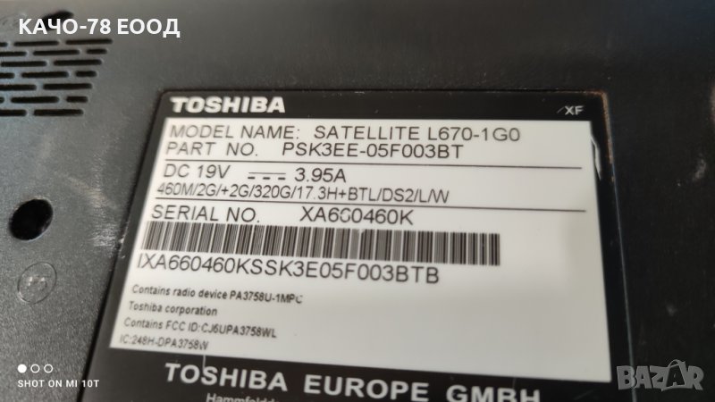 Лаптоп Toshiba Satellite L670-1G0 → Обява 42011182