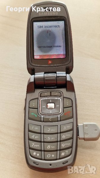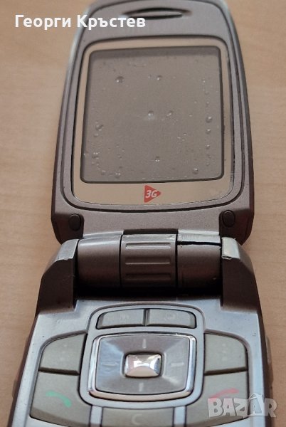 Samsung ZV40 - телефона работи, зарежда си батерията, и двата дисплея дават образ, мокрен е, и е кодиран, пантата е счупена, добър външен вид, без батерия и зарядно.