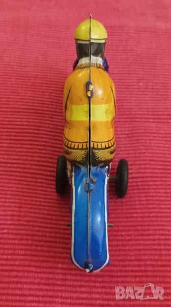 Стара тенекиена играчка Моторист, Унгария, 60 - те години на миналия век. Механизма работи, в отлично състояние, няма забележки.