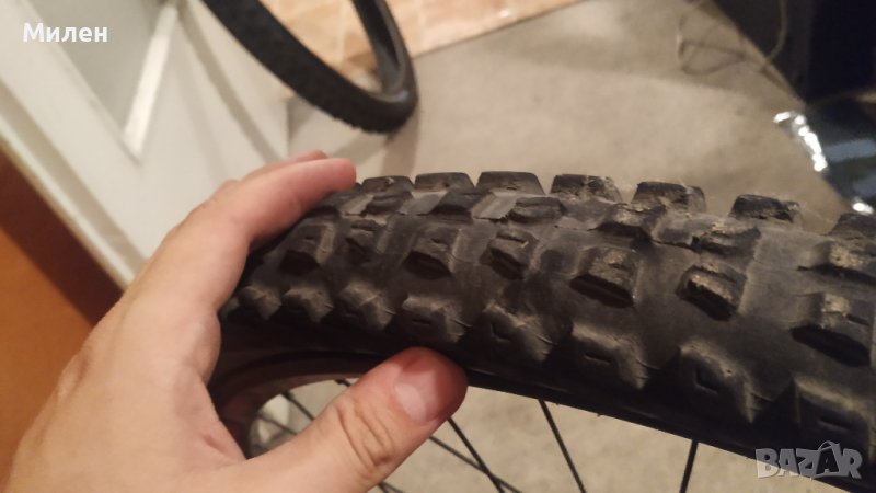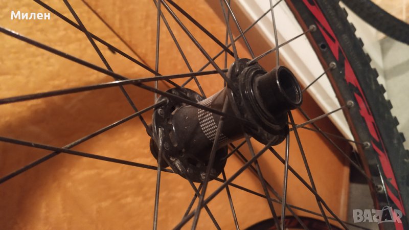 Предна на 20ка ос и задна 12х150. Предната е перфектна, задната и а 2-3 подбивки и леко играе, нищо фатално. Подарък оригиналната от сета гума, има още хляб в нея. Продавам ги понеже само стоят и прашасвят, имам Ендуро и надали пак ще направя даунхил колело. За лично предаване в София.