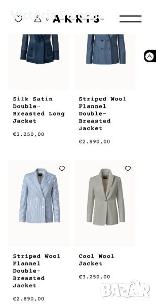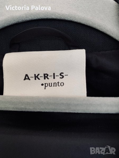 Сако на швейцарска марка , разкош или “тихия лукс”, почитателите на A-K-R-I-S punto са Маргарет Тачър,Никол Кидман, Мишел Обама,Анджелина Джоли,принцесата на Монако Каролина.Скъпо красиво луксозно сако без подплата.Рамо - 43-44см,ГО - 52см, дължина - 77,5см, ръкав - 60см, талия - 50 см.