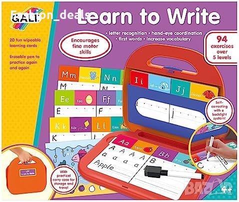 Учи децата на възраст над 4 години да пишат букви и думи чрез 94 упражнения на 20 карти.