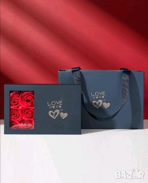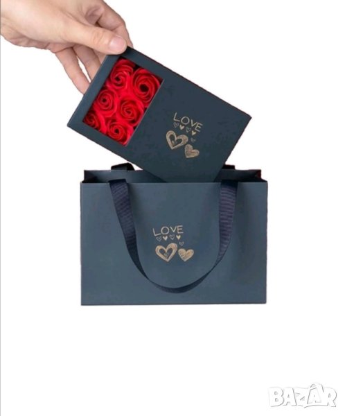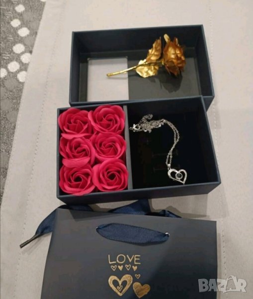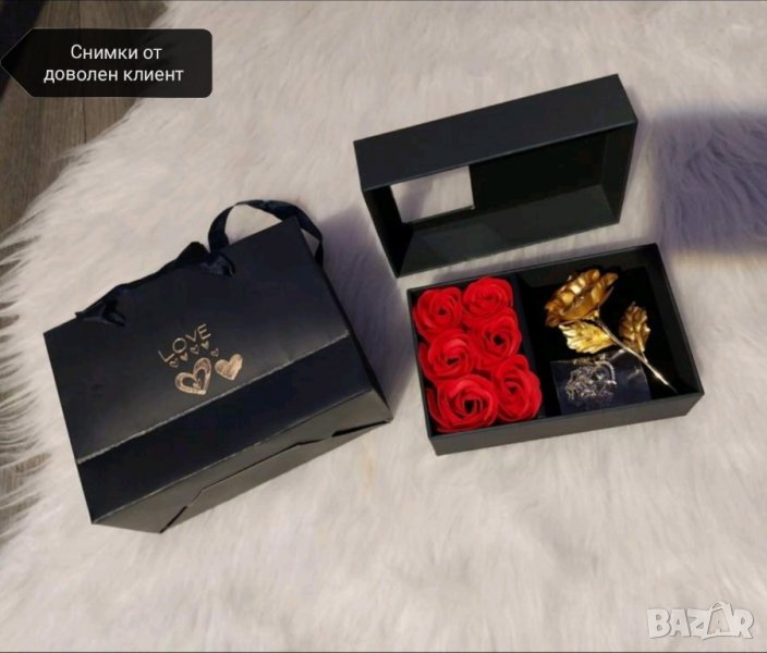 златна роза в подаръчна кутия и торбичка като на снимките.