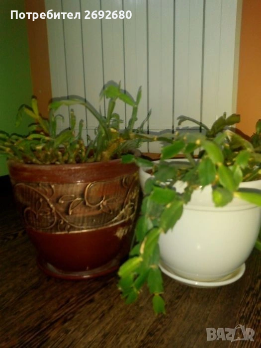 Коледничета розови в големите керамични саксии с керамични подложки в комплекта (бяла и тъмно-кафява) се продават заедно със саксиите на цена - 10евро за за бялата гланцирана саксия + коледничетата в нея. Бялата е чисто нова, без забележки, в идеално състояние, с подложка в комплекта към нея, размери: височина 18см., диаметър 20см.