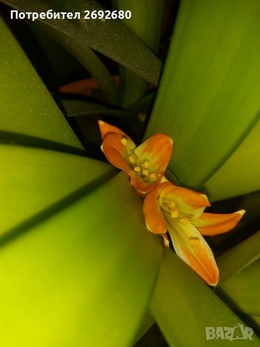Кливия оранжева вече има цветонос, още е малък и не се вижда на снимките, но до 1-2 седмици ще цъфне, в една саксия има общо 5бр. растения с отделни корени, като две от тях са доста едри, едно средно и две по-млади, цената е обща за всичко в саксията -17евро;