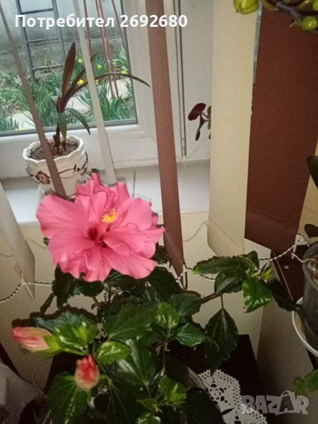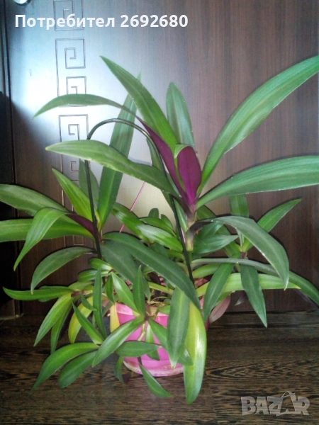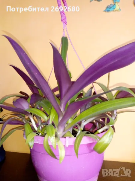 Традесканция рео с красиви ярко-лилави листа от вътрешната страна в голяма розова саксия за окачване от втората снимка има много растения с отделни корени в една саксия, височина на растението - 70см., ширина - 65см., цена - 10лв.