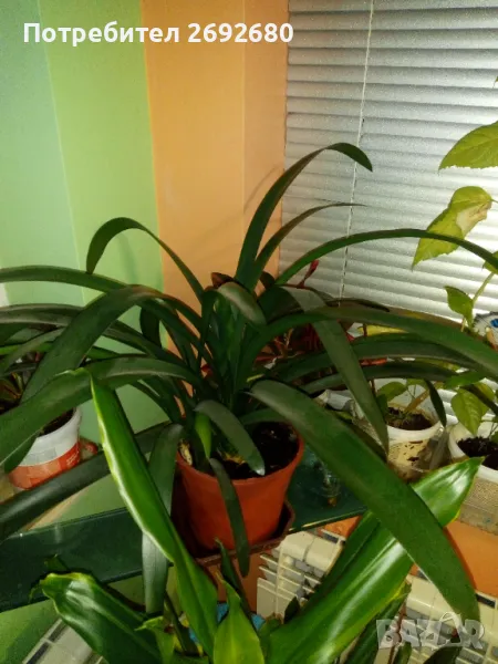 Кливия (не знам какъв цвят е, оранжева или жълта ще излезе, пролетта като цъфне, ще стане ясно), в една саксия има общо 5 растения, като две от тях са доста едри, има една средна и две по-дребни растения, цената е обща за всичко в саксията - 25лв.