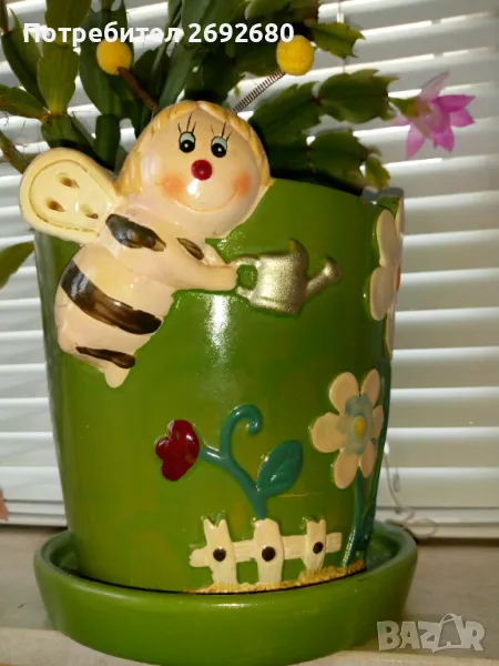 Коледниче розово, заедно с керамичната саксия-пчеличка - 20лв.