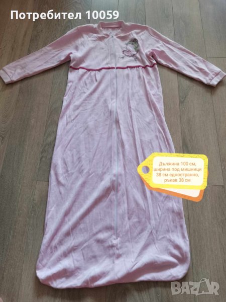 Чувалче за спане с дълъг ръкав, за момиче около 4 години, дължина 100 см, ширина под мишници едностранно 38 см, ръкав 38 см, ползвано само веднъж.