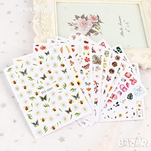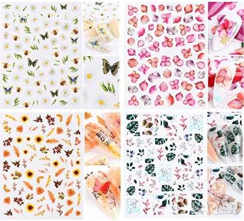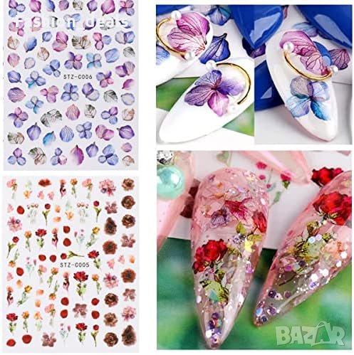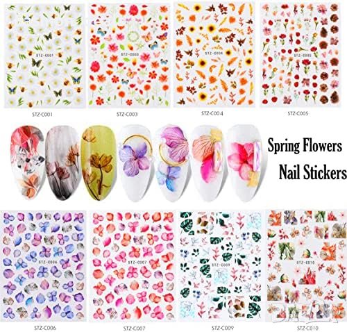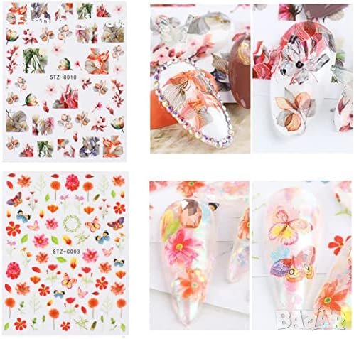 Многоцветни цветни стикери за нокти Самозалепващи се и водоустойчиви 8 листа с дизайн на цветя, рози, листа и пеперуди Идеални за ноктопластика, декорация на гел нокти Размери на артикула: 10.2 x 8 x 0.5 см Подходящи за жени, момичета и деца