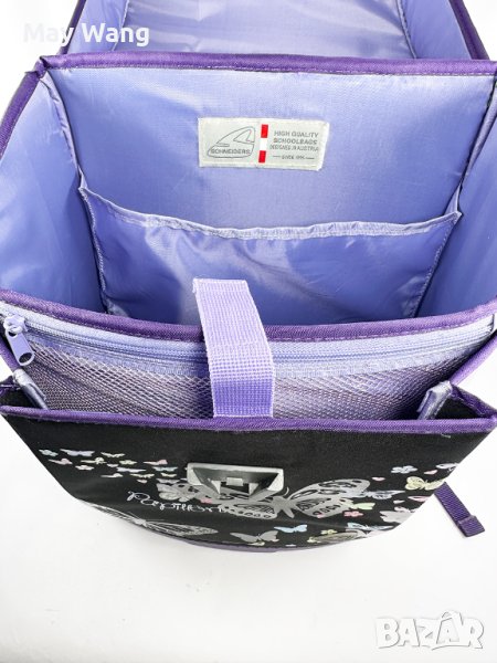 Ученически раница Schneiders , 39x31x17cm, 21 л, водоотблъскващ, Черен. Ученическите раници Schneiders са австрийска марка, изработени от висококачествен материал, проектирани в Австрия. твърда обвивка, може да побере А4 тетратки. 2 отделение. Ползван, има замърсяване на основна отделение, но външно е запазен. тегло: 1.05кг