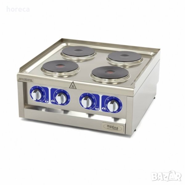 Електрическите котлони от Maxima са доказани във времето, с 50 години опит в производството на оборудване за ресторанти и заведения. Нидерландската компания е лидер на пазара и гарантира най-добрата покупка спрямо качество - цена! Изградена изцяло от неръждаема стомана с чугунени котлони, за ежедневна интензивна употреба в професионална кухня.