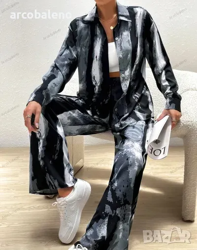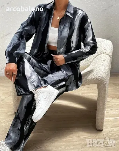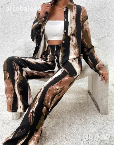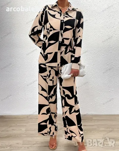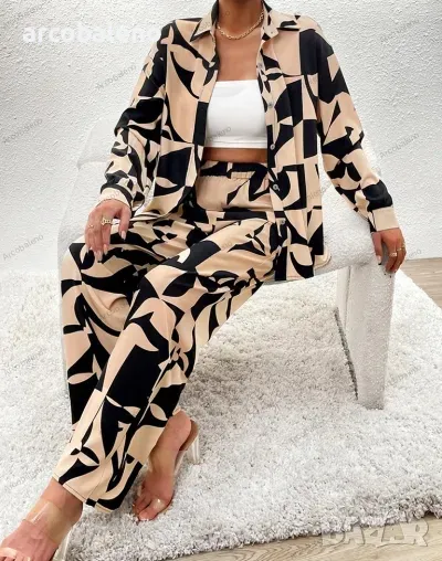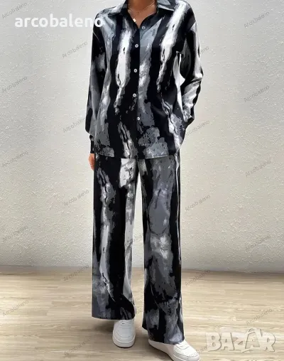 Ежедневен моден дамски комплект от две части с щампа. Уникален дизайн, класически стил, небрежен и удобен.