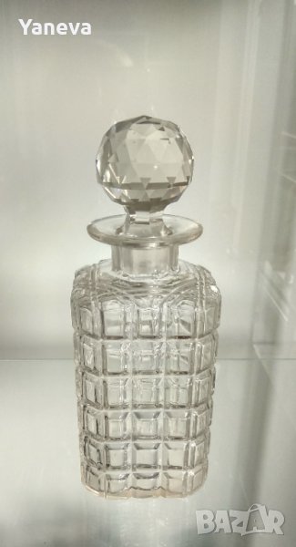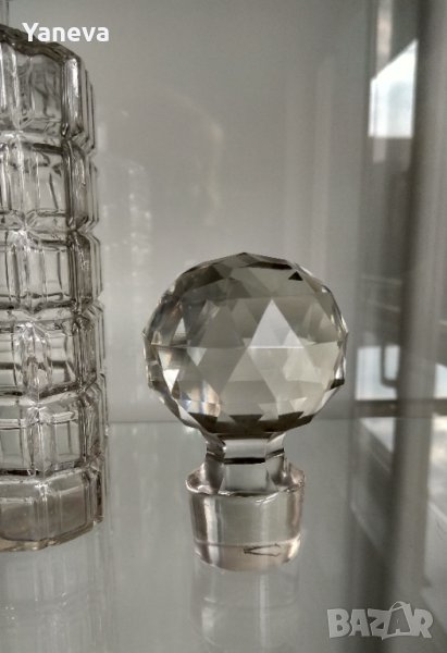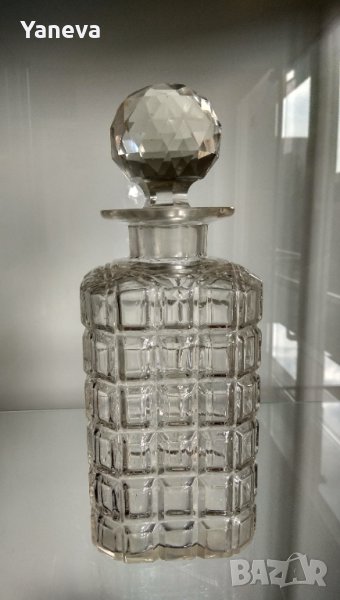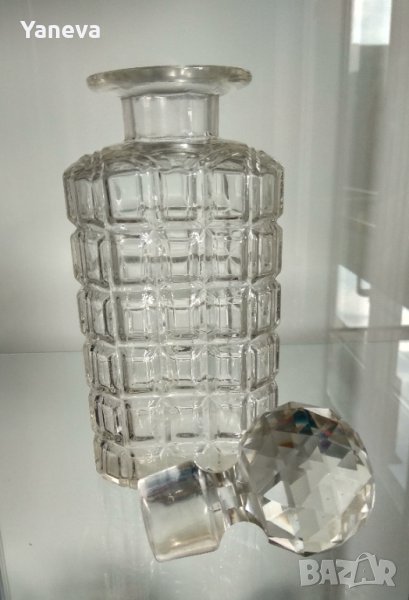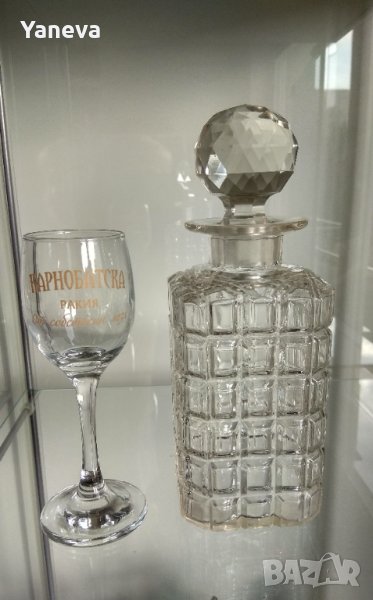 Масивна стъклена бутилка за напитки и чаша. Размер 25 см .Цена 30 лв.