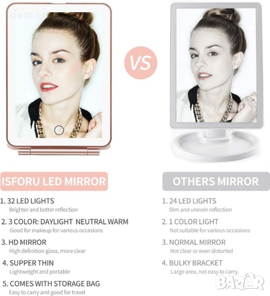 безупречно нанасяне на грим с нашето огледало за грим с 3 цветни светлини. Със своите 72 светодиода, той