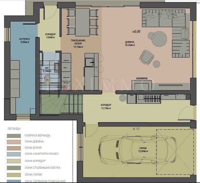 покрита веранда - 35,15 кв.м.