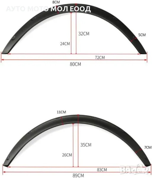 Този комплект разширители е универсален, тоест не е за конкретна марка и модел автомобил. При монтажа е възможно да се наложи да бъдат леко подрязани, или нагряти с