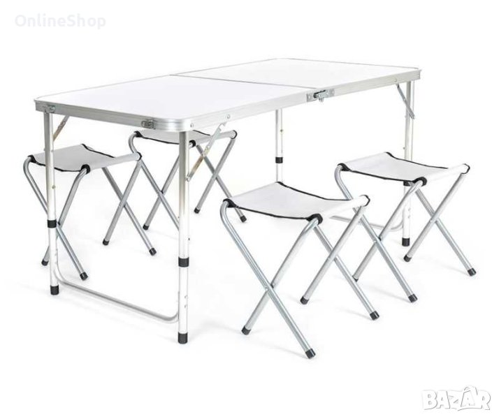 Компект Сгъваема Маса и Столове Malatec , 4 Стола, Алуминиев Материал, Сгъваема, 120 x 60 x 70 cm → Обява 42037016