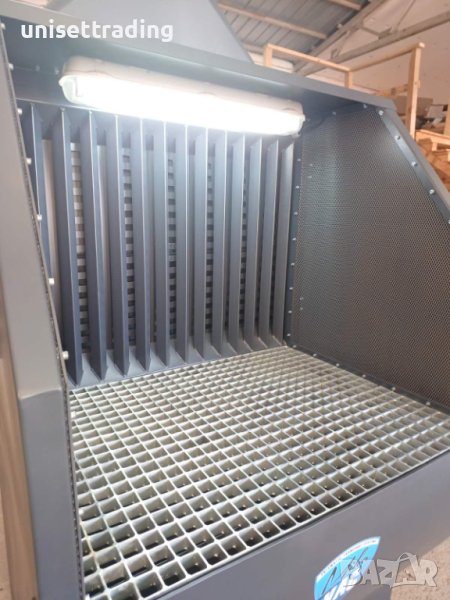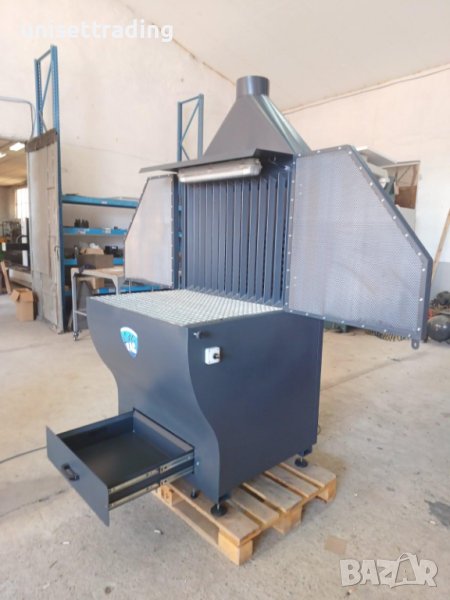 Полуоткрит смукателен шкаф с извод за отвеждане на замърсен отработен въздух.