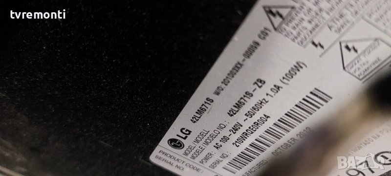 борда е гарантирано работещ Демонтиран от телевизор LG модел 42LM671S със счупен дисплей LC420EUG-PEF2 тесвана от нашия техник