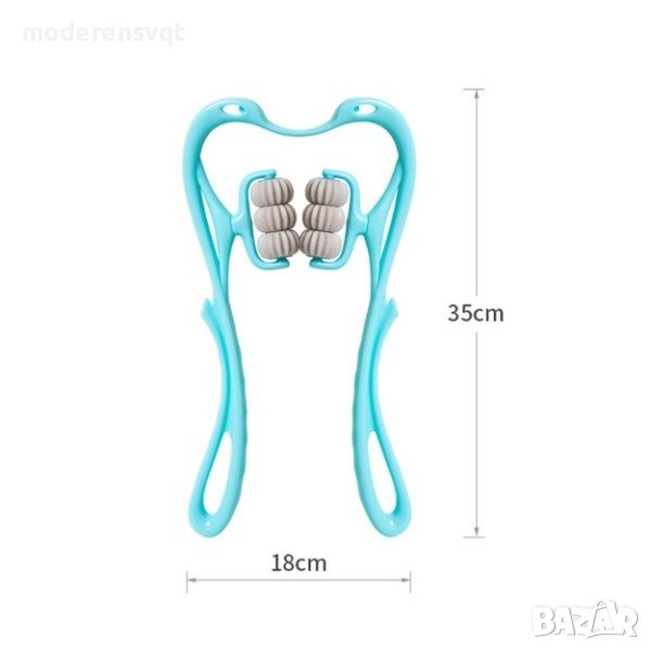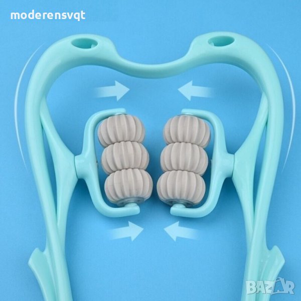 Ръчен масажор за врат с два силиконови накрайника от двете страни, разположени така, че да обхванат врата и да масажират мускулите до пълно отпускане и релакс.