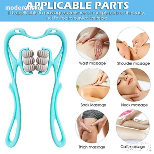 Модела подобрява кръвообращението и е предназначен да облекчава стреса, напрежението, умората, сковаността и болката във врата. Предимството пред сходни, електрически масажори е, че не е необходимо захранване и може да се използва навсякъде, където искате. Друго голямо удобство е, че можете да контролирате темпото, посоката и интензитета на масажа много по-добре от всеки автоматичен масажор. Уредът облекчава стреса, подобрява кръвообращението и с него може да се контролират темпото, посоката и интензивността на масажа. Преносим и лек, подходящ за дома, офиса и пътуване.