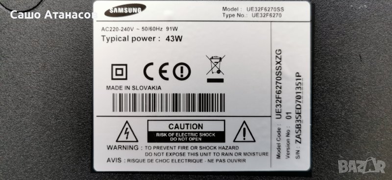 SAMSUNG UE32F6270SS с драсната матрица ,BN44-00615A ,BN41-01958A ,BN41-01938B ,WIDT30Q ,UF5000/1.2T