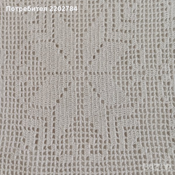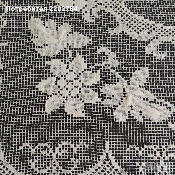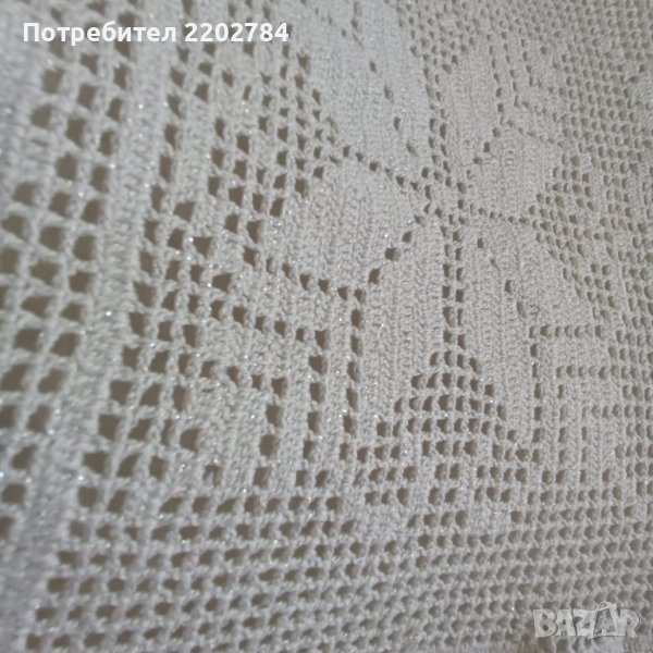 Втората е в два нюанса на бялото- основната част има тънък синеещ отенък а бурдюра е в бяло.- вижда се добре на снимките.Плътно плетиво на красиви орнаменти като е добавено и много фино ламе за по голям разкош(на втората снимка се забелязва) Много деликатна като,не се набива на очи.Цена 25лв
