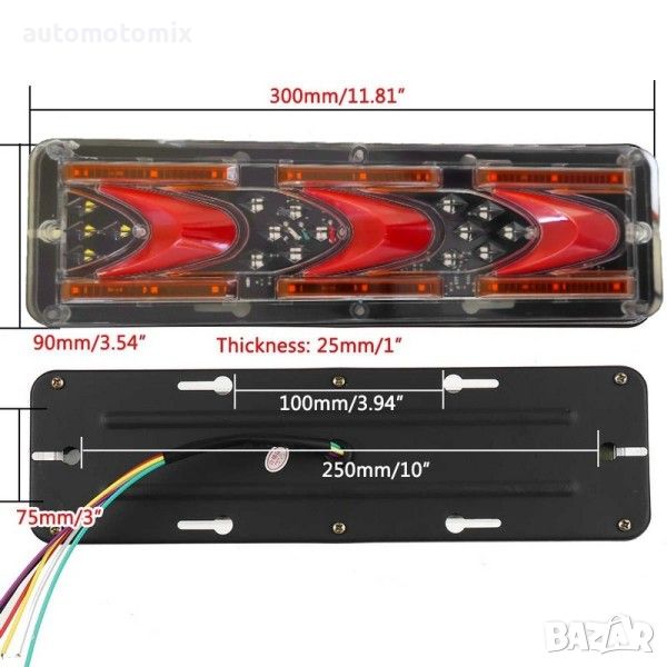Стоповете имат секциии за мигач (бягащ мигач), заден ход, габарит, стоп светлина.