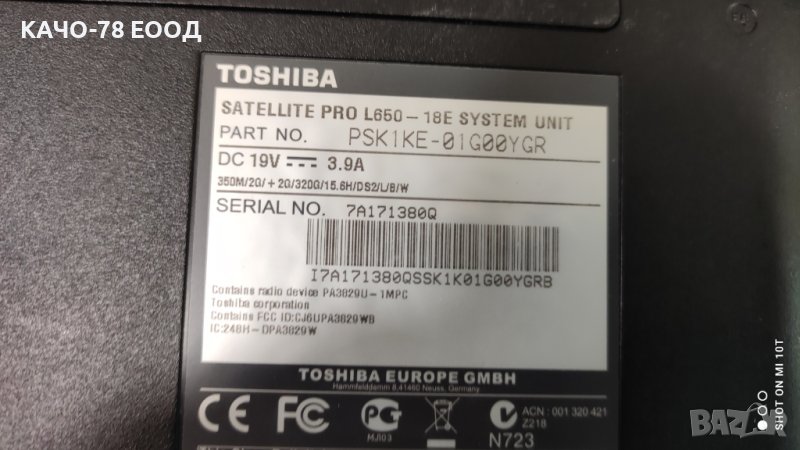 Лаптоп Toshiba Satellite L650-18Е → Обява 42042490