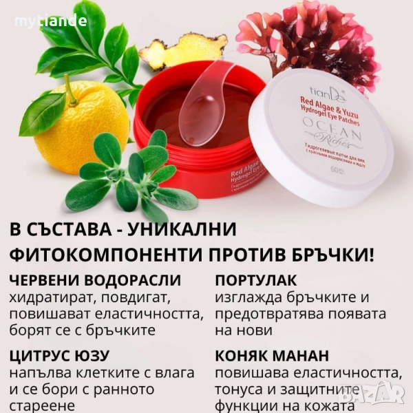 🌱 Съставът на продукта съдържа микс от фитокомпоненти: ценни минерали от морски червени водорасли, екстракт от цитрусов витамин юзу и полизахариди от корена на ефективен овлажнител - коняк мана . Формулата е подсилена с натриев хиалуронат, серамиди и ниацинамид (витамин B3). Активните съставки, действайки в комбинация, повишават еластичността, тонуса и защитните функции на кожата.