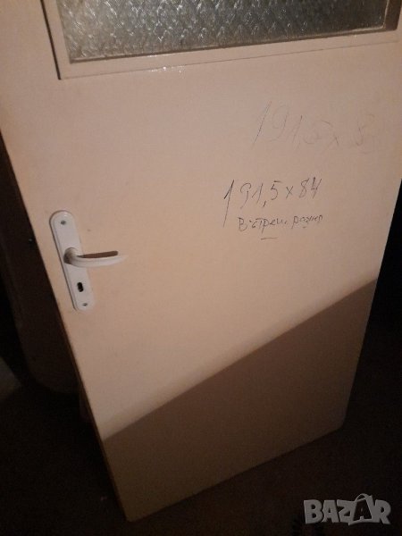 Продавам употребявани врати,крила от панелен апартамент,Размери на снимките. 1бр.от Баня или Wc,1бр.от Хол.гол.стъкло.2 бр.от Спалня малък прозорец и 1 бр.плътна.