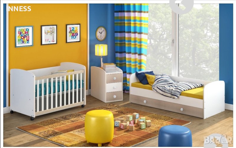/кошара, люлеещ механизъм, площ за повиване, детско легло, скрин, бюро/