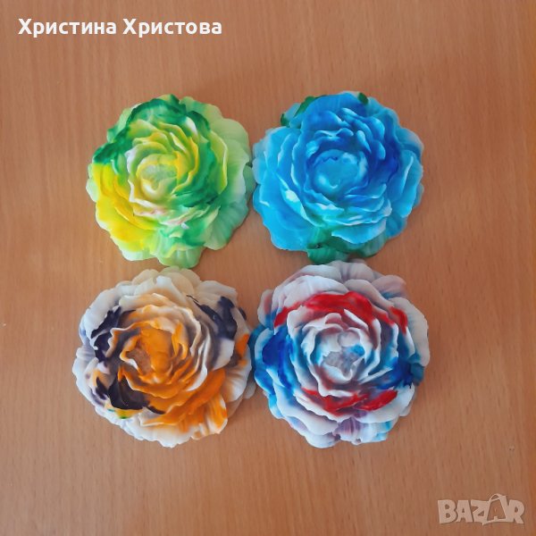 Цветето е с размери: диаметър 7,5 см, височина 3 см, тегло 72 гр. Изработва се в цвят по желание. Моля имайте предвид, че преливащите цветове не могат да бъдат повторени точно.