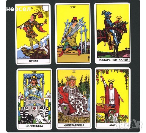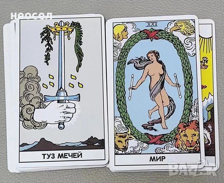 карти Таро на Уейт с илюстрациите на Памела Колман Смит. на кирилица/руски език + подарък покривка за предсказване.