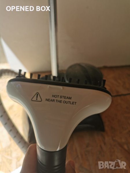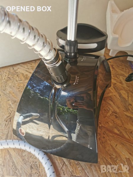 Намалете бързо намачканото с 90 минути непрекъсната пара, която се загрява за 45 секунди. Уредът разполага и с въртяща се на 360 градуса закачалка и телескопичен стълб за по-лесно използване и съхранение. За безопасност и допълнително удобство уредът автоматично ще се изключи, когато 2,5-литровият резервоар за вода е празен.
