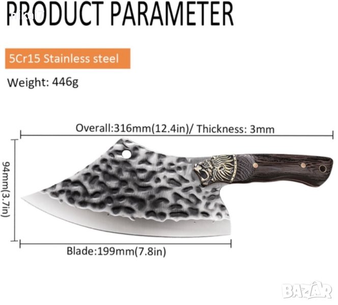 Безопасен и удобен: ножът за месо и ергономичната дръжка осигуряват нехлъзгав и удобен захват, подобряват докосването с ръка и правят нашия нож за месо лесен за движение, така че няма да се чувствате уморени да го използвате дълго време. Дръжката има отлични антикорозионни свойства, издръжлива е и лесна за почистване. Сатърът е с удобен захват, не се плъзга лесно, здрав е и спестява труд.