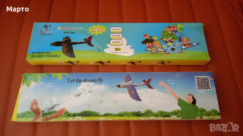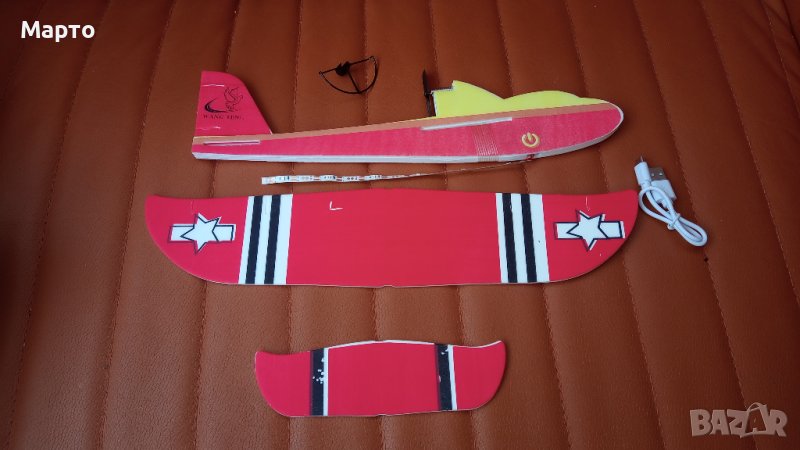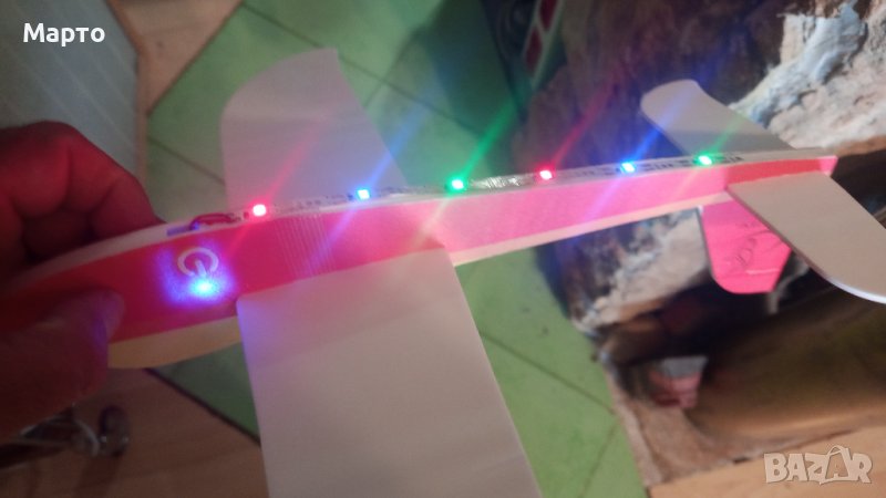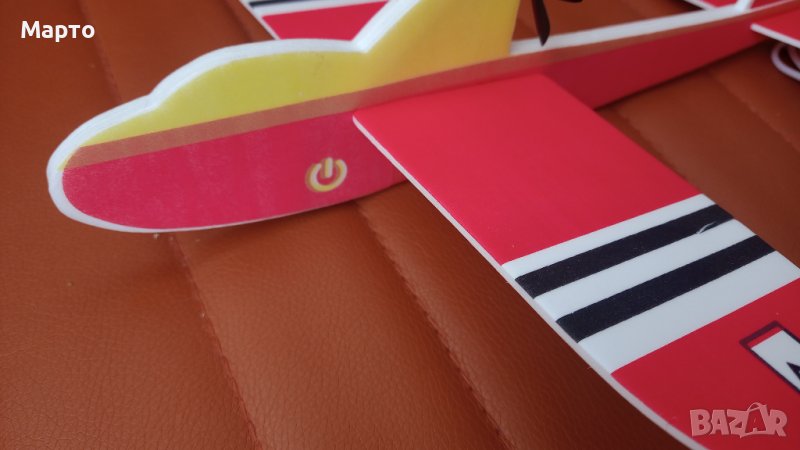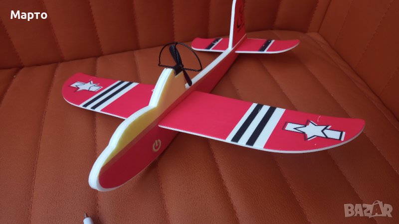 Моля да прочетете внимателно обясненията по обявата по-долу и тогава да задавате въпросите си!!! Щом обявата е активна, значи е налична и смело може да заръчвате директно ако си харесате нещо. Самолетчетата са нови и непускани. Имам 5 бр. Цената за 1 бр е 9 лв, а като се купят и петте общата и цена е 35 лв или по 7 лв за брой. Самолетчето е направено от стиропор, но е гъвкав и при удар не се чупи или изкривява. Перката е с предпазител, което не дава възможност също да се чупи. Отлична играчка за деца над 3 годишна възраст. Има вградена батерия, която се зарежда през юсб за около десетина минути и после може да се ползва поне половин час. Включва се отстрани и перката започва да работи, дългата светлина отдолу също постоянно, а вградения диод на мястото на включването мига. Двигателчето работи около 40 секунди и автоматично спира. След това си се запуска наново. При по-продължителна игра отлично решение за зареждане на място е преносима батерия за зареждане на телефон. Причината за