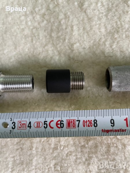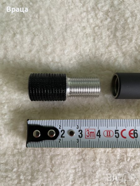 2-ра снимка - алуминиев преходник, дълбочина на вътрешна резба - 16мм, дължина на външна резба - 17мм, с накатна, боядисан