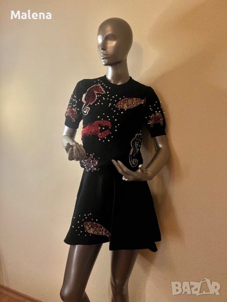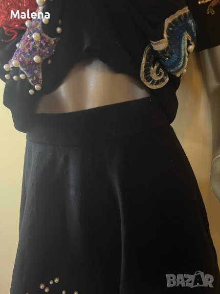 Комплект пола с блузка , обшит с пайети , полата е с ластик на кръста има еластичност !