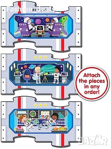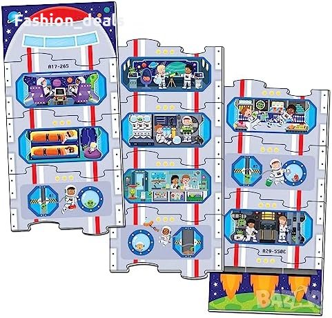 Размерът на пъзела е 18 x 108 cm (7" x 43"). Издължената му форма и по-големите размери осигуряват увлекателно предизвикателство за малките деца, като същевременно предлагат визуално представяне на сцената с космическата совалка.