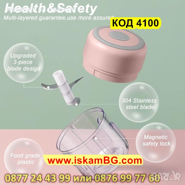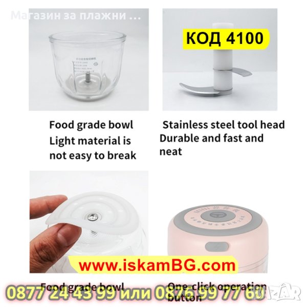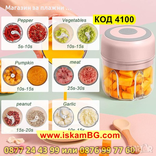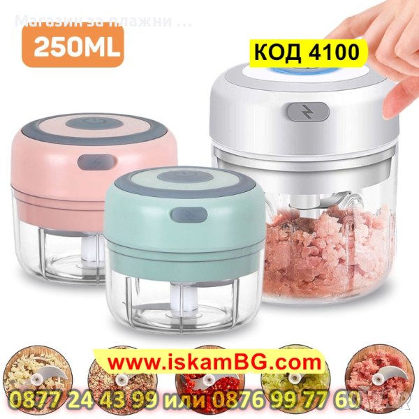 Мини електрически чопър е с вместимост 250мл., подходящ е за плодове и зеленчуци.