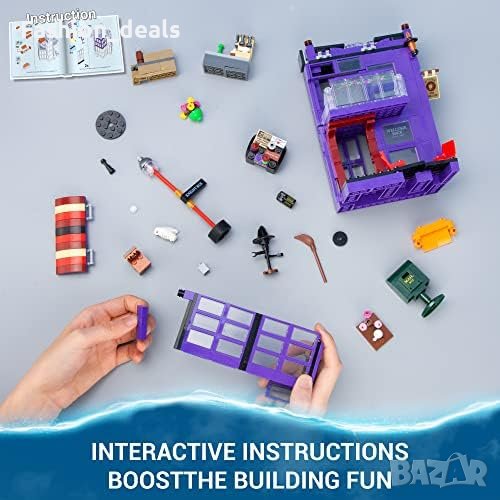Комплект за конструиране HP Knight Bus Pub: Вдъхновен от алеята Диагон на Хари Потър, разполага с дизайн на 3 нива с кафе-бар, частна стая, кът за кафе на терасата, маса на открито и др.